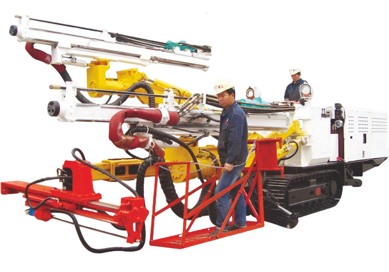 2、兩臺錨桿機(jī),其中一臺為伸縮滑架結(jié)構(gòu),采用沖擊鑿巖機(jī)做錨桿機(jī)鉆孔使用,鉆孔效率是旋轉(zhuǎn)鑿巖機(jī)的4倍以上。另一臺采用大扭距液壓旋轉(zhuǎn)鑿巖,主要負(fù)責(zé)鉆錨索孔和錨桿孔,鉆孔效率是傳統(tǒng)鉆的2倍以上。